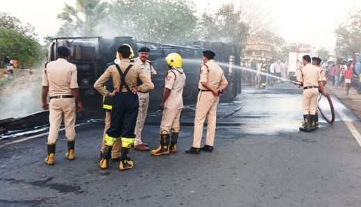 गिरियक थाना क्षेत्र के कोयरी बिगहा मोड़ के पास शनिवार को डीजल-पेट्रोल लोड चार चेम्बर वाली टैंक लॉरी पलट गई। जिससे लॉरी में भयंकर आग लग गई। लॉरी में 9 हजार लीटर डीजल और 3 हजार लीटर पेट्रोल लोड था। मारुति को बचाने में हादसा हुआ। आग लगने के पहले पेट्रोल-डीजल सड़क पर बह गया था। नहीं तो लॉरी ब्लास्ट कर सकती थी। जिससे ज्यादा नुकसान होता। अग्निशमन दस्ते ने आग पर काबू पाया। घटना शाम चार बजे हुई। सूचना पाकर एसडीएम कुमार ओमकेश्वर, राजगीर डीएसपी सुनील कुमार सिंह, राजगीर अग्निशमन डीएसपी नवीन कुमार सिंह मौके पर पहुंच चुके थे।