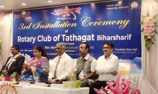 बिहारशरीफ बिचली खंदक पर सभागार में तीसरे अधिष्ठापन समारोह में रोटरी क्लब ऑफ तथागत के प्रतिनिधियों ने नए सत्र की शुरुआत की। इसमें नए सत्र के लिए दीपक कुमार को अध्यक्ष तो महेश कुमार लोहानी को सचिव बनाया गया। मुख्य अथिति डीजी नम्रता व विशिष्ठ अतिथि कुमार पुजारा ने इस समारोह में उन्हें पदभार दिलाया।