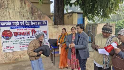 बिहारशरीफ के बड़ी पहाड़ी मामू भगिना पहाड़ के पास एनएच किनारे स्थित नालंदा रीढ़ एवं हड्डी सेंेटर क्लिनिक ने नए साल में सामाजिक सरोकार कार्य की शुरूआंत कंबल वितरण से किया। क्लिनिक संचालक डॉ. अमरदीप नारायण और उनकी धर्मपत्नी डॉ. रश्मि कुमारी सिलाव के कटारी गांव पहुंचे। जहां दंपती ने कंबल का वितरण किया। ठंड में सिकुड़ते गरीबों के शरीर कंबल पड़ा तो उनके चेहरे खिल गए।