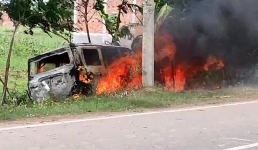 न्यूज नालंदा – बच्चे की मौत के बाद फूटा आक्रोश: चालक की पिटाई कर स्कॉर्पियो फूंका, बस में तोड़फोड़….