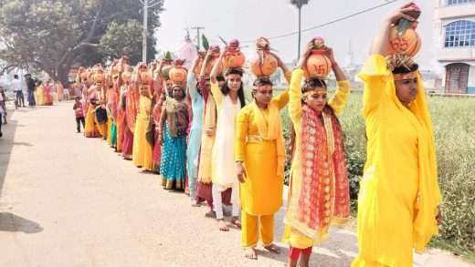 सोहसराय के कृष्णा नगर में भगवान शंकर और मां पार्वती का दरबार सज गया है। नवनिर्मित मंदिर में प्राण प्रतिष्ठा के पहले बुधवार को महिलाओं ने भव्य कलश शोभा यात्रा निकाली। सूर्य मंदिर तालाब से 121 महिलाओं ने कलश में संकल्पित जल भरा। इसके बाद बाजा-गाजे के साथ बमबम भोले का जयकारा लगाते हुए श्रद्धालु नवनिर्मित शिव मंदिर पहुंचे। जहां विधि-विधान से धार्मिक अनुष्ठान की शुरूआत की गई।